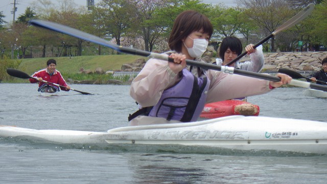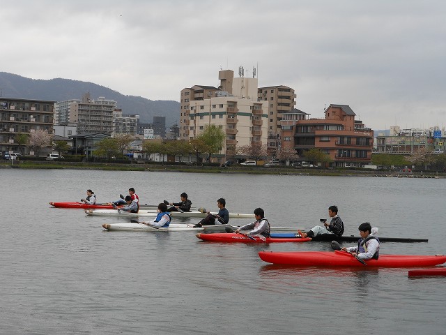 河川沿いの桜を見ながら優雅に漕ぐイベント。部員と一緒にペア艇に乗って春の息吹を感じよう。
